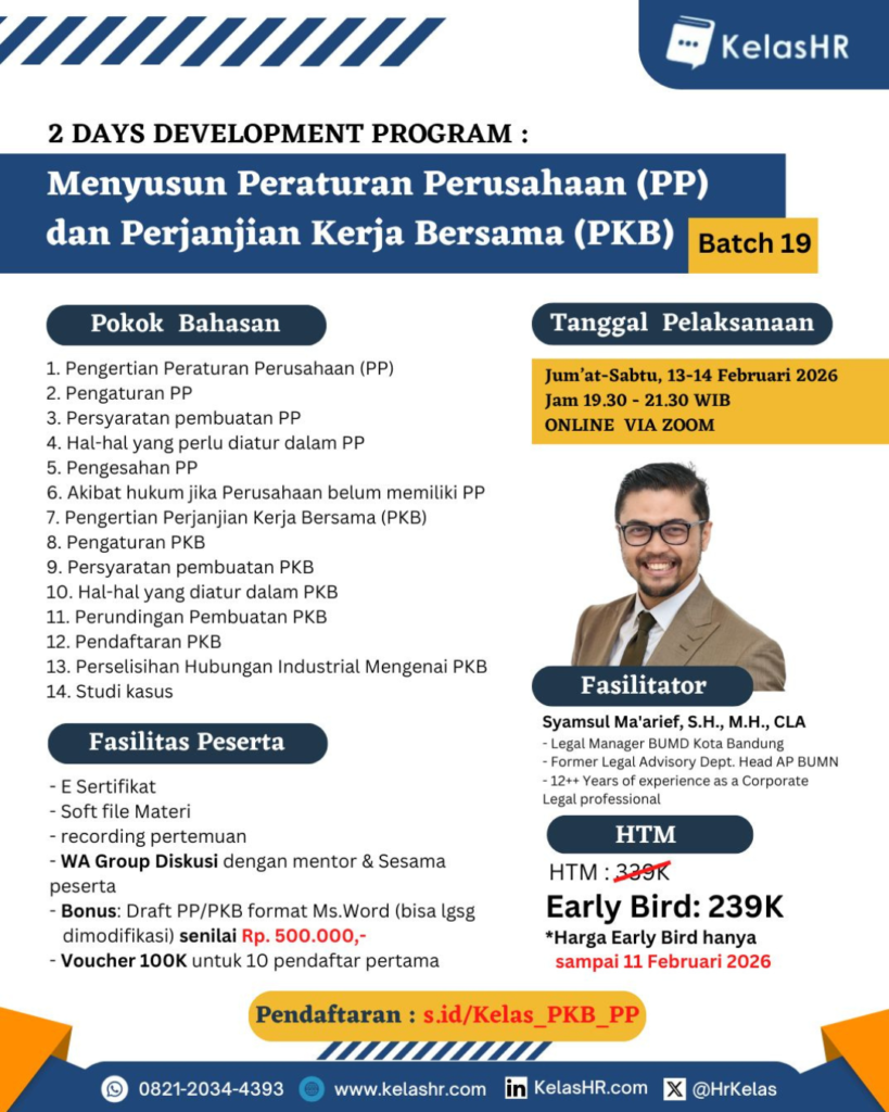 2 Days Development Program: Menyusun Peraturan Perusahaan (PP) dan Perjanjian Kerja Bersama (PKB)