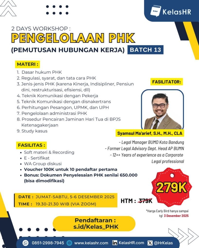 Pengelolaan PHK yang efektif adalah salah satu kompetensi paling penting yang harus dimiliki oleh setiap HRD. Mengapa demikian? Berikut adalah alasan mengapa Anda harus memastikan Anda dan tim HRD Anda menguasai keterampilan ini: