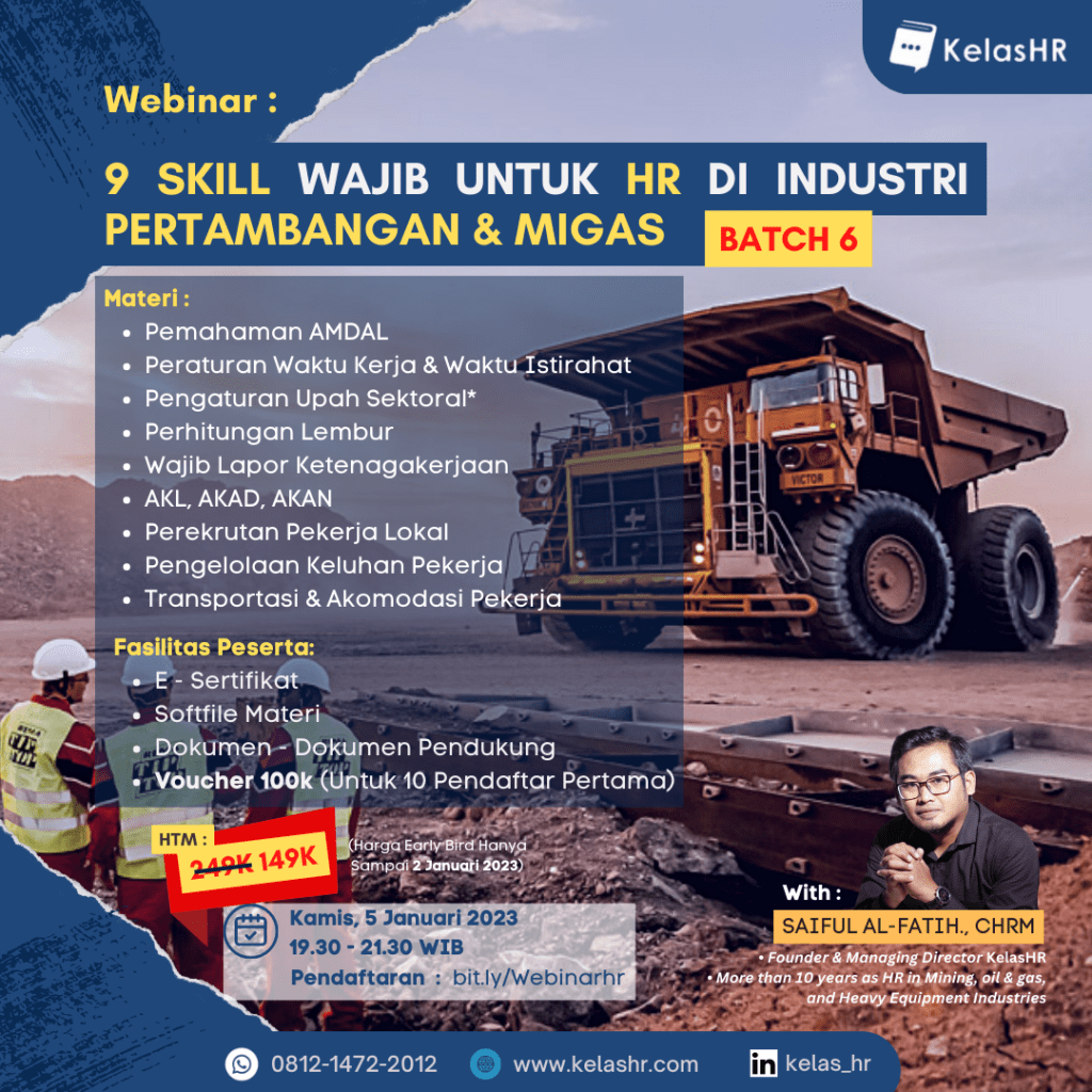 Nah buat Anda yg tertarik menjadi HRD di Industri pertambangan atau Migas, wajib banget ikut Webinar: “9 Skill Wajib untuk HR di Industri Pertambangan & Migas”. (Batch 6)