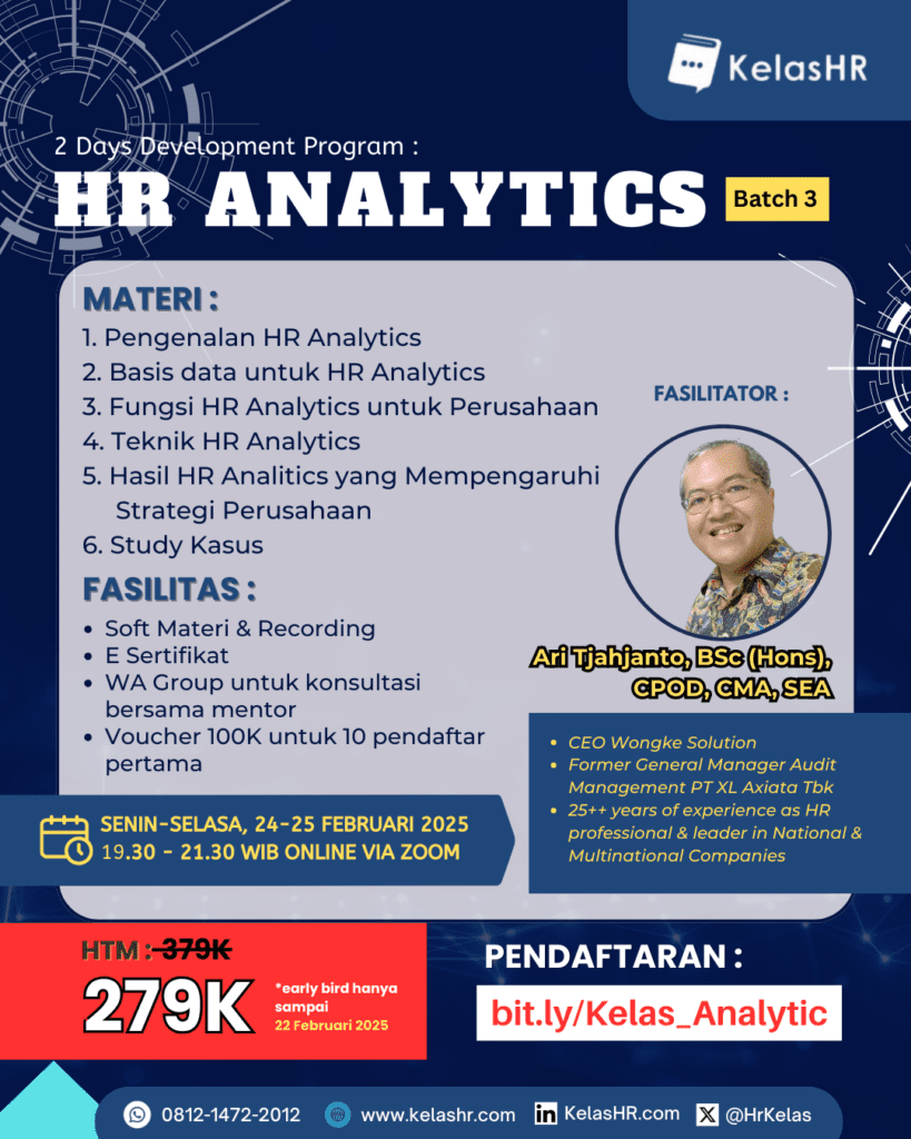 Di era digital ini, data menjadi kunci untuk pengambilan keputusan yang efektif di berbagai bidang, termasuk dalam pengelolaan sumber daya manusia (SDM). HR Analytics, sebagai ilmu yang memanfaatkan data untuk memahami dan meningkatkan kinerja SDM, menawarkan solusi inovatif bagi para HRD.